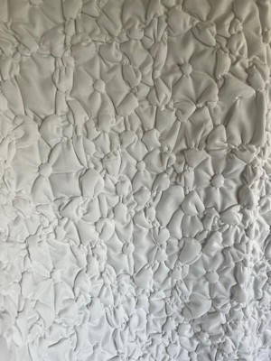 [This review was collected as part of a promotion.] This comforter set is a beautiful shade of white, very thick and soft! Fits perfectly on my bed and the design is gorgeous. It looks like it will last a long time. It is luxurious! The only thing negative I have to say is there were a lot of strings hanging off that I had to trim. I appreciate that I got this sent to me!