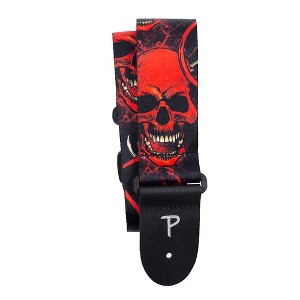 The Perri's Devil Skulls guitar strap offers a stylish way for guitarists to support their instrument. 'll appreciate the adjustable length from 39 to 58", ensuring a perfect fit for guitar and playing style. The durable yet lightweight polyester material provides comfortable support through long sessions, while the non-slip leather ends securely attach to guitar. Decorated with a fiery skull and crossbones pattern, this strap makes a bold statement on stage that will turn heads. Serious guitarists will find the Perri's Devil Skulls strap a reliable and eye-catching accessory for their instrument.