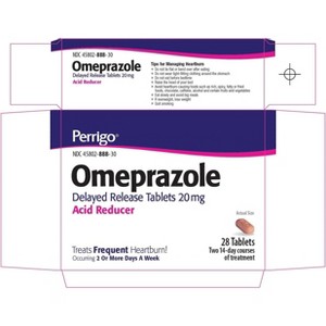 Perrigo Omeprazole Acid Reducer Capsules are designed to provide 24-hour relief from frequent heartburn using a delayed-release proton pump inhibitor formula. This product works by reducing stomach acid production over time, supporting long-lasting symptom control when used consistently. The capsules are intended for adults who experience heartburn multiple days per week and are not designed for immediate relief. Each package contains 28 capsules, providing a full treatment course when taken once daily as directed. The delayed-release capsule format is easy to swallow and fits into daily routines when taken before a meal. Perrigo Omeprazole is intended for short-term use only and should not be taken continuously beyond the recommended duration. Clear labeling provides guidance on proper timing, dosage, and treatment length. Users should consult a healthcare professional if symptoms persist after completing the recommended course.
