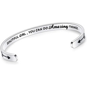 High Quality : The cuff bracelet is made using premium stainless steel for durable and anti-tarnish. Clear enough inscription for easily reading and notice. Smooth and comfortable for daily wear. Recommended Age Grade: Above 3 Years Old.