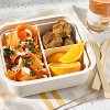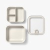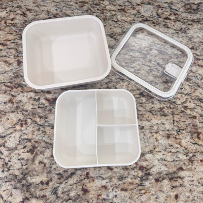 [This review was collected as part of a promotion.] I selected this beautiful cream colored bento snack box to match the circular one with the handle. Be sure to check that one out as well! These are a great kit. When I purchased them, I was thinking about using them more from the standpoint of snacks that we could take along with our grandson when traveling. However, I was excited to see that these can be microwaved. So we could keep leftovers in them as well. And, I can use them for work.