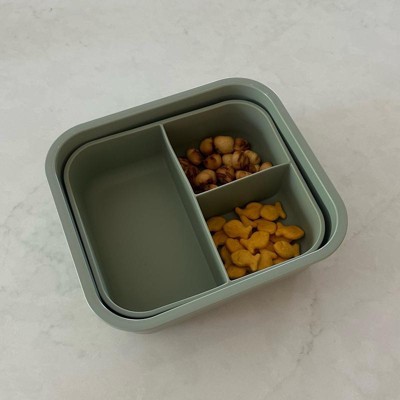 [This review was collected as part of a promotion.] This snackle box was larger than I expected and can hold a good amount of food. I love that it is dishwasher, microwave, and freezer safe. The inside tray is a silicone or soft plastic which is nice for little hands. You can also remove the inside and just use it as one large bowl. It’s the perfect size for packing kids snacks.
