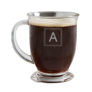 Personalize every morning cup of coffee or tea with our Classic Celebrations Personalized Letter Glass Coffee Mug. Makes a great housewarming, bridal shower or wedding gift mug set - include their favorite coffee or tea for a great gift combination! The clear glass mug will be delicately etched with your first or last initial to create a stunning, personalized mug.