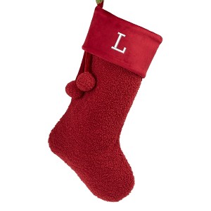 Create a warm welcome for Santa with our festive Cozy Burgundy Shearling Embroidered Initial Christmas Stocking! This deep burgundy stocking is embroidered with your chosen initial is a crisp white thread, and is accented with two burgundy pom poms.