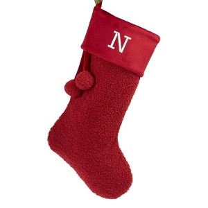 Create a warm welcome for Santa with our festive Cozy Burgundy Shearling Embroidered Initial Christmas Stocking! This deep burgundy stocking is embroidered with your chosen initial is a crisp white thread, and is accented with two burgundy pom poms.