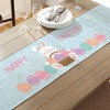 Add a festive touch to your Easter celebration with this charming Easter Bunny Table Runner! Featuring a pastel blue background adorned with a playful bunny, colorful eggs, and the cheerful message "Happy Easter," this decorative piece is perfect for brightening up your dining table, buffet, or party display. The soft green ends add a refreshing springtime accent, making it a delightful addition to your seasonal décor.