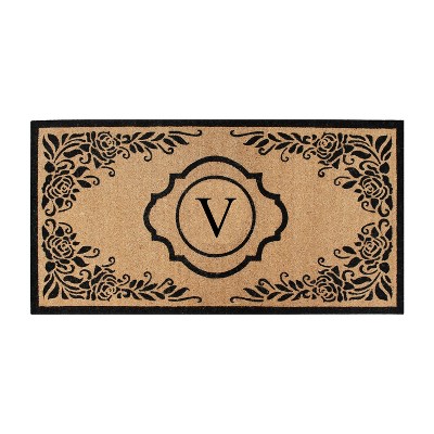 Personalization Mall Elegant Monogram Doormat, V, 20"x35"