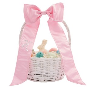 Personalization Mall Embroidered Initial Pink Bow, White Easter Basket, H