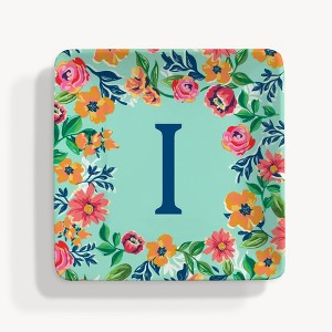Personalization Mall Flowery Initial Ring Dish, Blue Aqua, I