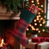 Transform your holiday ambiance with the exquisite Personalization Mall Holiday Plaid Stockings. Adorned in a classic plaid pattern featuring emerald green, red, white, and silver, this stocking is an ideal touch of warmth and elegance for your home. The plush emerald green velvet cuff adds a luxurious charm that captures the spirit of the season. Measuring a generous 17" L x 7.5" W and crafted from durable 100% polyester, it's fully lined for enhanced strength and durability—perfect for holding all your cherished holiday surprises. Easily hang it by its attached loop, and enjoy effortless maintenance with simple spot cleaning. Make your holiday celebrations truly personal and memorable every year.