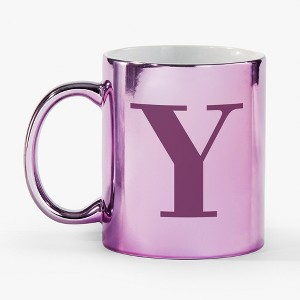 Sip in style with the Personalization Mall Metallic Initial 11 Oz. Mug in vibrant purple. Perfect for those who appreciate a personal touch, this mug can be customized with any initial, making it a unique addition to your morning routine or a standout gift for a loved one. The dazzling metallic finish reflects light beautifully, adding a pop of color and glamour to your kitchen collection. Each sip becomes an elegant affair with a design printed on both sides for eye-catching appeal. Crafted from high-quality ceramic, this mug features a mirrored electroplated finish that demands attention and reveals your taste for luxury. To maintain its stunning appearance, simply hand wash this 3.75-inch-high classic-shaped mug. Please note, it's not microwave safe. Elevate your everyday moments with a mug that is as distinctive as you are.