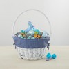 The custom Easter basket comes with a removable liner that includes a tie closure. It's easy to clean, just spot clean when necessary.