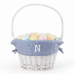 Delight your child this Easter with our Personalized Initial White Easter Basket with Folding Handle. This beautiful, hand-woven basket comes in a white color and measures approximately 17"-19" H x 12" D with the handle. Each basket is unique, with slight variations in color and size, adding to its charm. The basket is not just functional but also adorable and can be cherished for many years. It comes with white metal hinges on each side of the handle for easy storage. Please note that the handle does not stand up on its own. The standout feature of this basket is the removable liner, personalized with any initial of your choice. The liner includes a tie closure and can be spot cleaned for convenience. This personalized Easter basket is perfect for filling with Easter basket stuffers, making it an ideal gift for your little one. Please note that the basket content is not included. Whether it's a baby's first Easter or a fun surprise for an older child, this personalized Easter basket is sure to make their day extra special.