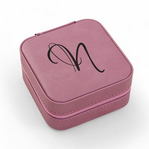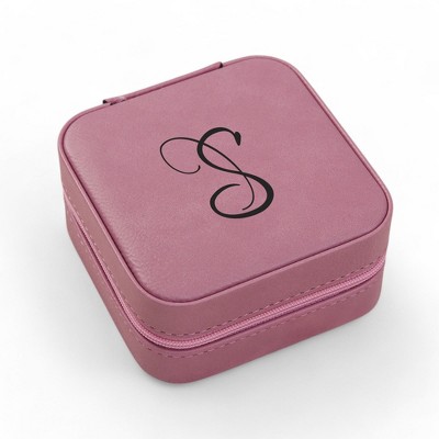 Encased in a rich, leatherette sleeve, our Pink Leatherette Jewelry Case with initial is the perfect place to store your jewelry. This case features a zipper closure, a suede-like interior, and compartments to hold rings, necklaces, and earrings. Personalized with any initial, this jewelry case makes an excellent birthday, Valentine's day, or bridesmaid gift. The zipper closure makes it travel friendly for a woman on the go, too!