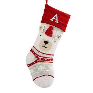 Create a warm welcome for Santa with our fun and festive Winter Polar Bear Embroidered Initial Knit Christmas Stocking. This adorable stocking is fully knit with 3-D accents making up the polar bear face, and your chosen initial embroidered in crisp white thread on the red cuff.