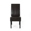 The Emilia dining chairs feature generous dimensions, measuring 25 inches in depth, 17.5 inches in width, and 39.5 inches in height. The seat itself is 17 inches deep and 17 inches wide, with a height of 19 inches, providing ample space for comfortable sitting. Constructed from a sturdy hardwood frame, these chairs are built to last. The high-quality hardwood ensures long-term durability, making them a reliable addition to your dining area for years to come. Upholstered in rich chocolate brown bonded leather, the chairs exude sophistication. The unique color of the leather complements any existing dining room decor, adding a touch of elegance. Well cushioned, these chairs offer hours of comfortable sitting. The padding provides excellent support, making them suitable for extended dining or socializing sessions. Each set includes two chairs, making it easy to upgrade your dining table. The 2pcs/set option is perfect for those looking to add a coordinated seating solution to their dining area. 2pcs/set