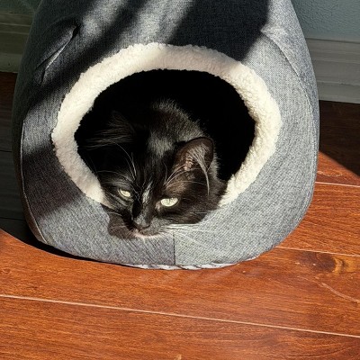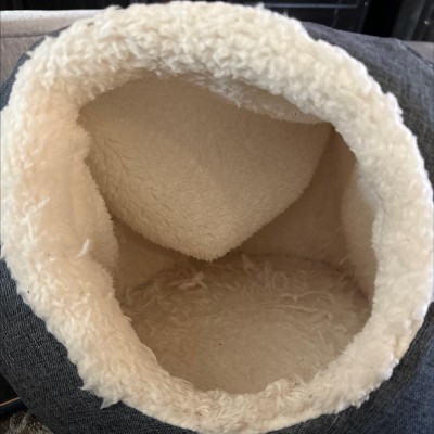 This is my cat's favorite pet bed, she would rate it a 5/5! However, I am subtracting a star because it is not easy to clean. If you put it in a washer/dryer, it comes out misshapen. If you spot wash with a cloth/detergent is not adequate to deep clean all the layers and padding, especially if your pet is prone to accidents. The fuzzy Sherpa fabric inside holds odors and stains, and gets matted easily.