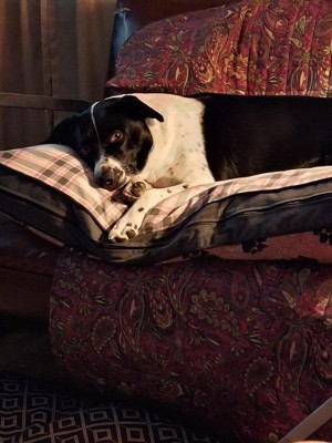 [This review was collected as part of a promotion.] We have a 13 year old dog that gets up in the middle of the night and walks around on the bed. Well,we started giving her the hemp calming chews and it helps her calm down and actually sleep through the night. Here is a picture of her after given the chews