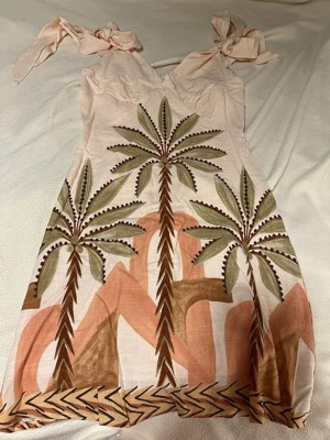 [This review was collected as part of a promotion.] I am absolutely in love with this dress! I have two gorgeous dresses from this brand and both fit great. The straps make the dress easily adjustable and the color matches the images and description online. I am 5’5” and 110lbs so I bought an XS. The pattern of the palms match on the back of the dress too (as a seamstress myself this is very important for me regarding patterns). The bow straps are easy to adjust as well. Overall it fits great, it is true to size, and the fabric is comfy giving a lovely summer vibe. I look forward to buying my next dress from here!