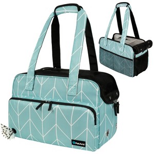 PetAmi Small Dog Purse Carrier, Soft Portable Pet Puppy Cat Travel Handbag Tote, Airline Approved Breathable Pockets Fleece Bed (Chevron Teal)