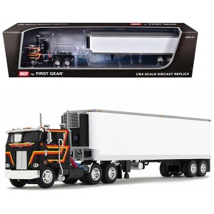 Peterbilt 352 COE 86" Sleeper and 40' Vintage Trailer with Reefer Black with Stripes 1/64 Diecast Model by DCP/First Gear