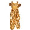 This dog toy features a cute floppy giraffe design, crinkle belly, and squeaky hands, and is plush and soft to the touch. Measures 19in x 17in (with arms open)