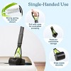 This cat and dog pooper scooper features a long handle and serrated scooper to remove pet waste from litter boxes, grass, dirt, gravel, and concrete without having to bend down