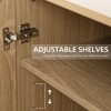 The storage cabinet in question is a versatile piece of furniture designed to meet various organizational needs within a home. It can function as a pantry cabinet, providing ample space for kitchen essentials and groceries, ensuring they are neatly stored and easily accessible when needed. Additionally, it serves as a sideboard cabinet, offering extra surface area for decorative items or serving dishes, enhancing the aesthetic appeal of dining spaces. Furthermore, its adaptability extends to acting as an entryway cabinet, where keys, mail, and personal belongings can be conveniently stowed away, maintaining order and tidiness at the entrance of a home.