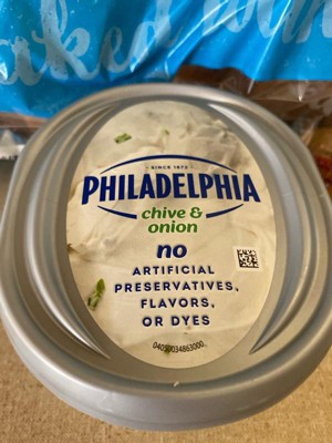 Philadelphia Chive & Onion Cream Cheese Spread is delicious. It has a great balance of flavor and not too overpowering. It goes well with bagels or crackers.