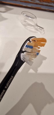 - Triangular tips brush away stains for whiter teeth in just 2 days (vs a manual toothbrush, with whitening toothpaste)