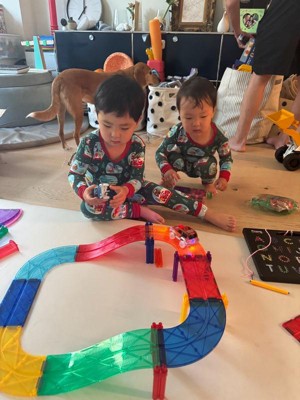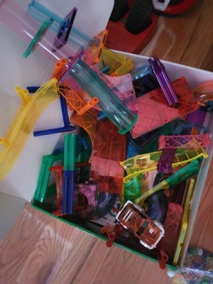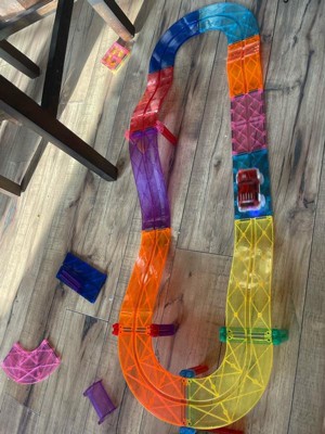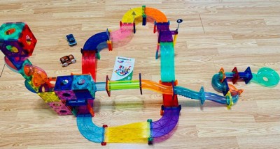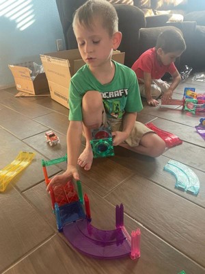 [This review was collected as part of a promotion.] My children love these magnetic blocks. We’ve done multiple variations to run the cars and the marbles. My kids have even begged me to buy more blocks and cars for them to make bigger tracks. It’s been so much fun seeing how big we can get the track.