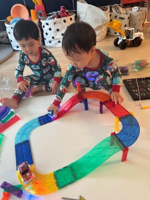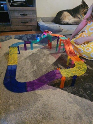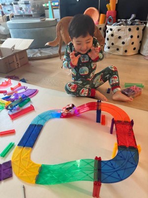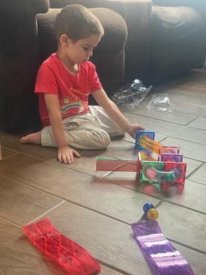 [This review was collected as part of a promotion.] This set is super fun! It’s great on its own or as an add on to your existing magnetic tiles. We have Picasso tiles and other major brand tiles and this set works perfectly with both! We really enjoy setting up obstacle courses and race tracks for the cars and balls. Super fun & great open ended play.