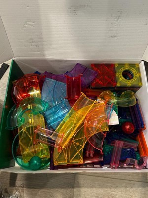 - IMAGINE BIG. BUILD YOUR BIGGEST IDEAS…. PACKAGE INCLUDES: 108 piece Marble Run and Race Car Track Combo Magnetic Tiles Building Blocks Set empowers kids to construct fun mazes and thrilling race car courses, enjoying the magic of both activities. This includes 20 magnet tile race car tracks, 2 Racing cars, 15 support columns, 67 marble track pieces, and 4 Marbles. PICASSO-TILES STEM Marble Run Building Blocks set perfect for creating everything from houses to castles and imaginative scenes.
