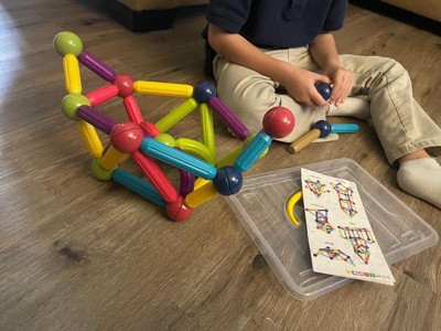 - STORAGE BIN INCLUDED: Sturdy storage bin comes with this set. Plastic top handle for easy carry and capable of holding the weight of the toys. Simple locking system on sides. Made for space utilization to keep tots organized. Durable construction withstands frequent use. The magnetic stick building block stacking toy is both fun and educational, allowing kids to learn while they play and providing a great opportunity for bonding with parents or siblings.