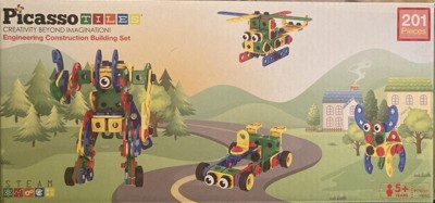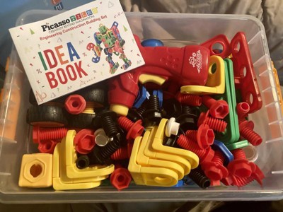 PicassoTiles 201 piece Engineering Kit (PTN201) comes with an idea book to enable children to construct over 50 building designs including 33 exploded step by step instructions. Be an engineer, architect, or designer, this construction set offers open-ended possibilities to nurture STEM skills, children creativity, intelligence, promote problem solving abilities, logical thinking, improve hand-eye coordination, gain strong sense of geometrical shapes and stay focused by playing.