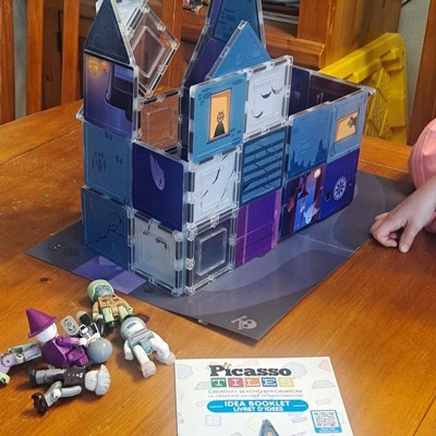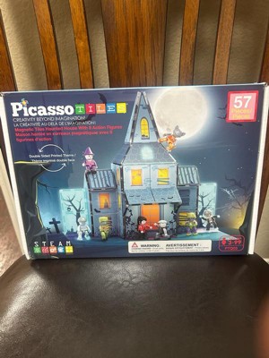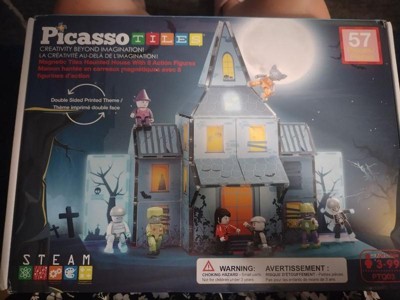 - BUILD YOUR BIGGEST IDEAS WITH MAGNETIC TILES - EMPOWER KIDS TO DREAM DESIGN AND DISCOVER: Unleash boundless creativity with PICASSO-TILES haunted house theme Magnetic Building Tile Blocks, featuring 57 pieces that include both exterior and interior printing & 8 magnetized Character Action Figures. Ignite your child's imagination with detailed and printed magnet tiles construction toy pretend play set. Construct, imagine and create using your originality and vision! This kit will surely be a favorite for toddlers, teenagers, and adults all year long