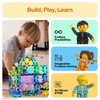 Unleash hours of educational enjoyment and imaginative play with the PICASSO-TILES Magnet Building Tiles Set, a highly-rated magnetic construction toy that fosters creativity, hands-on learning, and child development. This thoughtfully designed educational building block set includes magnetic tiles pieces in vibrant, translucent colors and various geometric shapes such as squares triangles, etc. Children can delve into architecture, design, and engineering by constructing colorful towers, Buildings, and more — all while grasping the basics of STEM (Science, Technology, Engineering, Mathematics / Math). The magnetic tiles for toddlers and kids are crafted from safe, BPA-free plastic and feature strong magnets that securely connect each tile, promoting frustration-free building. These durable magnetic blocks aid in enhancing fine motor skills, spatial thinking, and logical reasoning. Suitable for boys and girls aged 3 and above, this magnetic tile toy is an excellent way to reduce screen time and encourage open-ended play. Unlike restrictive toys, these building blocks allow your son or daughter, child / children to experiment, create, and explore numerous configurations. Whether your child is building a miniature city or exploring symmetry and balance, the PICASSO-TILES Magnetic Tiles set sparks innovation and learning in an engaging manner. These creative toys magnet tiles are perfect for home and school settings, daycare centers, classroom activities, and family game nights. Parents, teachers, and therapists appreciate this magnetic building set for its educational benefits and adaptability. More than just a toy, STEM toys for kids are a tool that supports childhood development across various areas