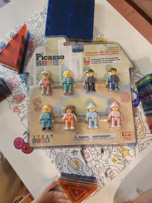[This review was collected as part of a promotion.] PicassoTiles magnetic action figures. These figures are designed to be compatible with PicassoTiles building blocks and other magnetic construction toys. Here's what's known about them: Compatibility: They can be attached to magnetic building tiles and brick blocks, allowing for creative scene-building and imaginative play. Design: The figures have flexible, movable arms and legs that can bend and twist in any direction. Educational Value: PicassoTiles toys encourage STEM learning by promoting creativity, problem-solving, and motor skills. Safety: These toys are made from BPA-free and non-toxic ABS plastic, ensuring a safe play environment for children. Variety: PicassoTiles offers various character sets, including family figures, city builders, and animals, and these figures can be combined with other sets to expand building possibilities. Origin: These tiles are made in China with a main office in Southern California. PicassoTiles are a popular choice for parents looking for educational and engaging toys that can help develop their child's cognitive and motor skills.