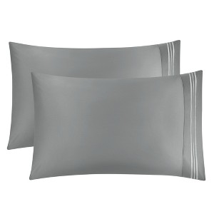 PiccoCasa Combed Cotton Embroidered Solid Pillowcases 2 Pcs - 1 of 4