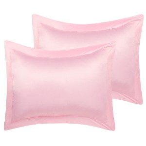 PiccoCasa Satin Silky Oxford Machine Washable Envelope Closure Euro Sham Pillowcases 2 Pcs - 1 of 4