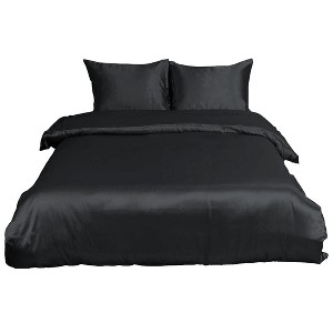PiccoCasa Silk Satin Solid Reversible Bed Duvet Cover Set with Corner Straps 3 Pcs