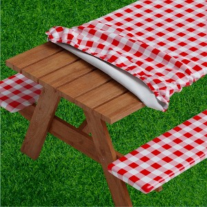 - • FITTED TABLECLOTH FOR SECURE FIT- The Sorfey Picnic Table & Bench Tablecloths were designed to stay put on the table even under windy weather, so that nothing keeps you back from enjoying your outdoors dining. Set includes: 1 Table cover and 2 Bench Seat Covers (for 12" width benches).