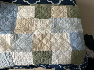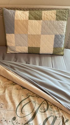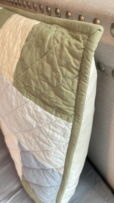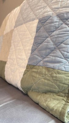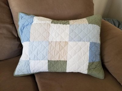 King Pieced Patchwork Quilt Sham Blue - Threshold™: Cotton Material, Diamond Quilting, OEKO-TEX Certified