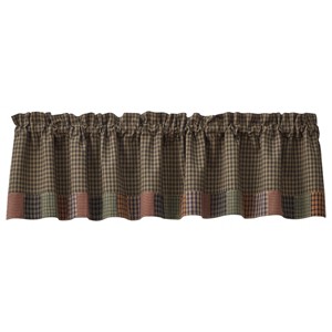 This classic casual pattern introduces the perfect touch of rustic character! The main fabric has a mini plaid design in black and tan hues, charmingly accented by a border design featuring a variety of plaid fabrics in various farmhouse inspired hues. Lined to provide a functional window topper to help prevent harsh sunlight from entering your home. Pair with a tier or curtain panel, not included, to provide more coverage. For longest lasting use, we recommend dry cleaning this window treatment.