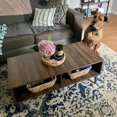 Target's inventory has been getting better in recent years. I love this table and the color is richer than I anticipated for the price, which is great! The only thing is that the legs are just a gray plastic which was not in the information and I think is pretty tacky for the price, but they're so low and out of the way that it wasn't a deal breaker. Will maybe one day just replace them with nicer legs. Easy install instructions and it look really cute overall!