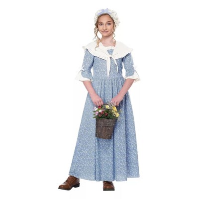 This historical girl costume works for a number of costume occasions including plays, parades and themed costume occasions. The set includes a full length dress with apron, collar, and bonnet. Produced by Underwraps Costumes and comes brand new manufacturer packaging.