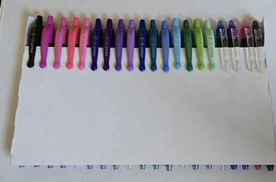 [This review was collected as part of a promotion.] I love the G2 pens -- they're the only ones that I use at work -- and having a rainbow of colors is a dream! My husband never gets excited about office supplies but promptly started claiming ownership of the green and teal colored pens in this box the second it arrived in the mail. The addition of the FriXion pens is nice as well. I'm a sewist and these are my go-to for marking fabrics. They show up very well and last long enough for me to finish a project, and then they iron right out!