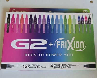 Pilot 20ct G2 Gel Pens Fine Point 0.7mm and FriXion Synergy Erasable Gel Pens Extra Fine 0.5mm Colorful Inks Holiday Gifting