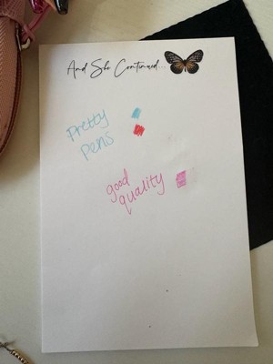[This review was collected as part of a promotion.] These gel pens glide easily on paper and great colors. They write well and have a good grip. When I tried to erase what I wrote with the erasable pens, it erased most of it but not all. It’s a great value for the amount of gel pens and it’s a perfect size for your hand. I use these for work everyday and they’re very comfortable. Thank you Influenster and I would recommend this product.