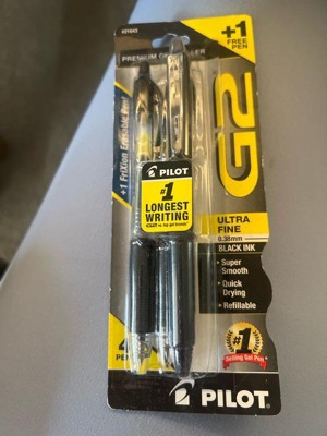 [This review was collected as part of a promotion.] I have always loved the Pilot G2 pens! They write immediately, and very smoothly on many papers. The pen has a nice feel in your hand. The only disadvantage is they take a little bit to dry on something like a greeting card.